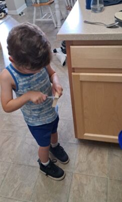 Recently Li’l T got a small rasp and has been going to town carrying it around the house with the rasp and a scrap workpiece from Dada’s latest project. The time has come for Grandpa to think about lighting the torch to be passed to this little guy and his littler brother, Mighty M, who wants to be doing everything his big brother is doing. Littlest brother Wondrous W is only a month old so he is behind the curve for now, as is their cousin Dynamic D who is nine months old. Yeah, walking and talking are helpful in the process.