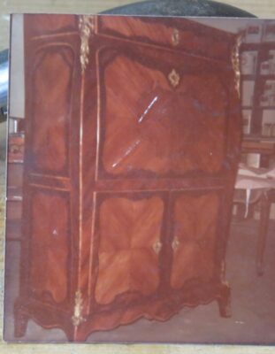 One of the unintended pleasures of the undertaking has been the rediscovery of items I did not even remember I had, at least until I put my hands and eyes on them. Such is the case with this 3″ x 3″ print, taken with a tiny Kodak Instamatic pocket camera fifty years ago. This piece was one of the “kits” delivered to the Schindler’s shop in the back of a Mercedes station wagon. Taking pictures of my projects was simply not part of my operating system back then, but this tulipwood and rosewood marquetry secretaire bore a royal inventory stamped, probably from about 1700. Along with the other “kits” I worked on around this time, including a pair of bureaus by Riesener, a switch was turned for me that has directed part of my life to this very day.