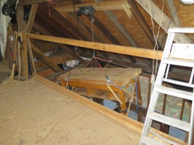 The solution? Buying and installing a Harbor Freight power winch. Their smallest 120v plug-in model was more than adequate. I bolted the winch unit to a 2×8 then lag-screwed the 2×8 into a number of the 2×6 rafters. The new system works perfectly and moving heavy things up and down to the barn attic is now a piece o’ cake.